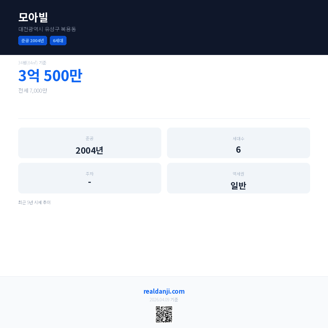 모아빌은(는) 2004년에 준공되었으며, 현재 22년차입니다. 총 6세대 규모입니다.