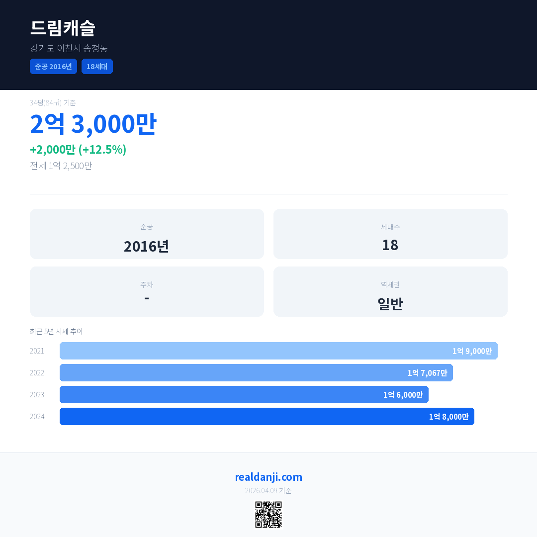 드림캐슬 최근 거래가는 2억 3,000만입니다. (2024-10)