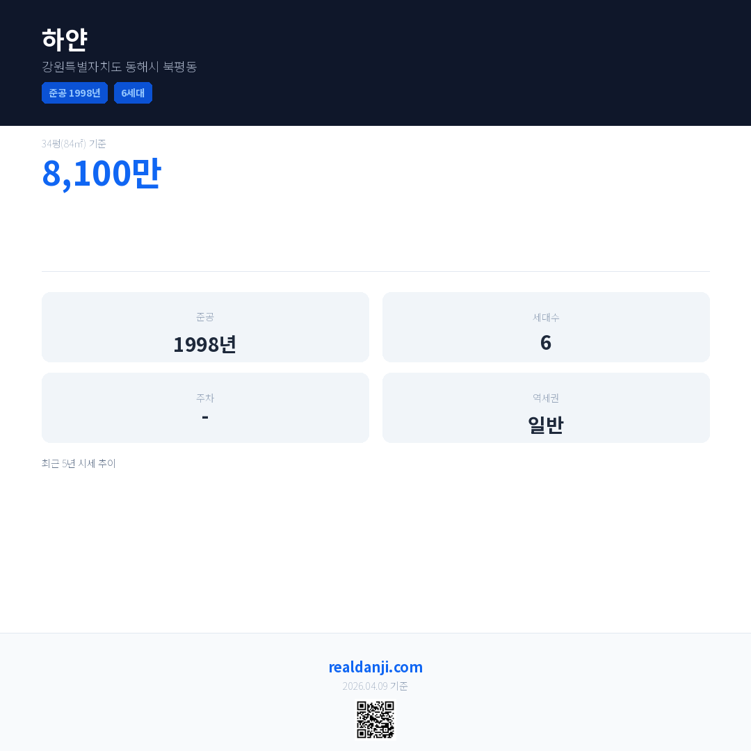 하얀은(는) 1998년에 준공되었으며, 현재 28년차입니다. 총 6세대 규모입니다.