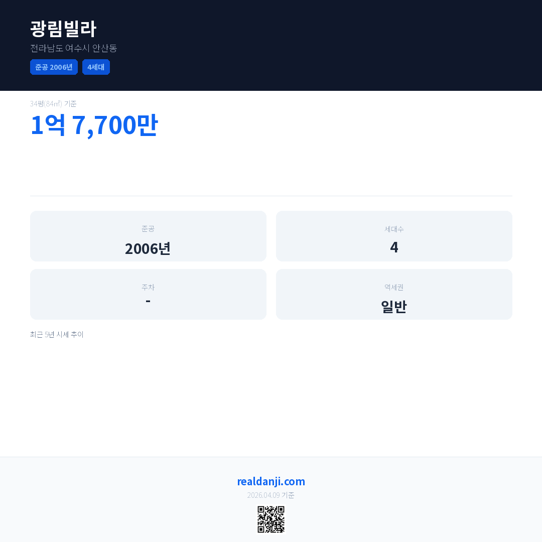 광림빌라 최근 거래가는 1억 7,700만입니다. (2019-08)