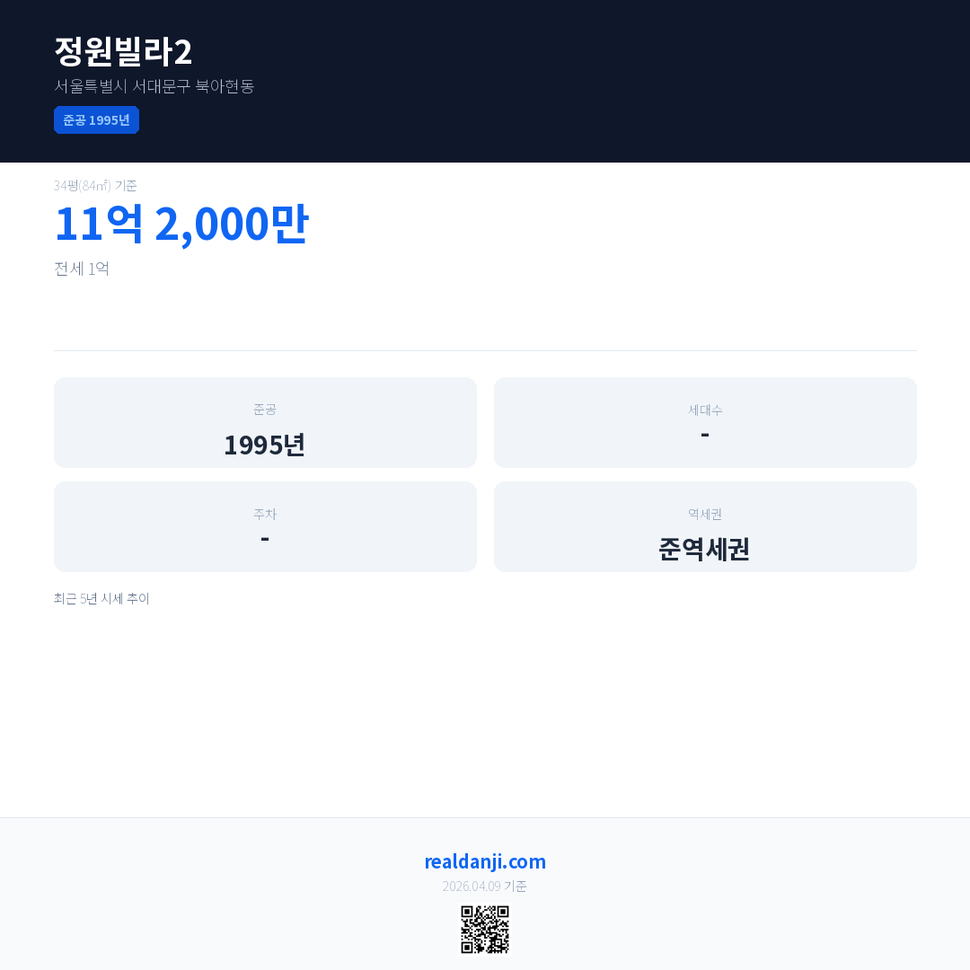 정원빌라2은(는) 1995년에 준공되었으며, 현재 31년차입니다.