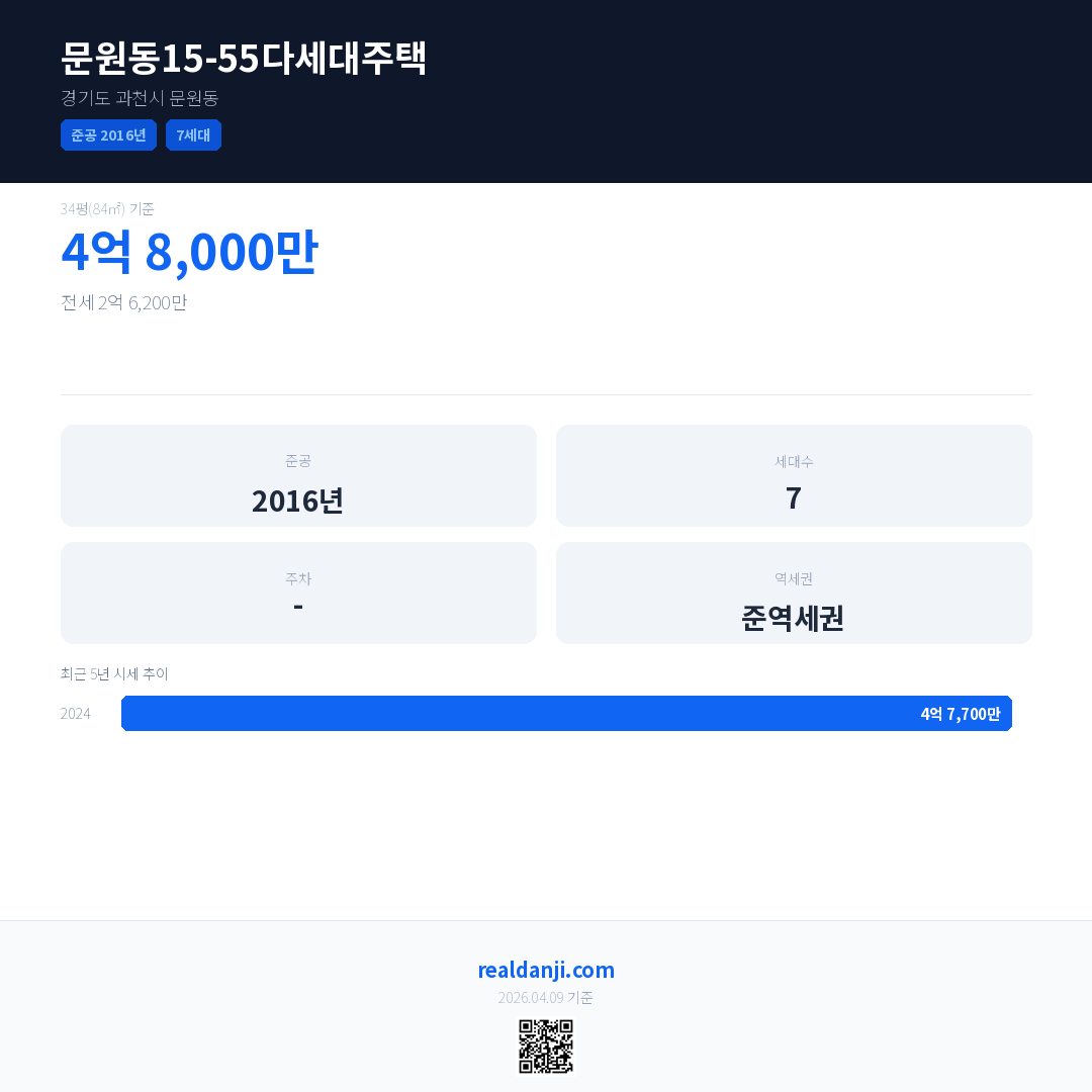 문원동15-55다세대주택 최근 거래가는 4억 8,000만입니다. (2024-05)