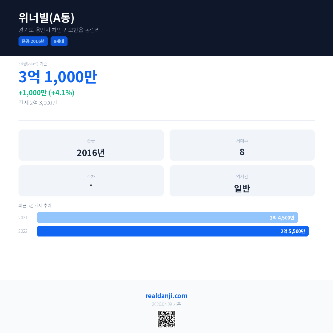 위너빌(A동) 최근 거래가는 3억 1,000만입니다. (2022-02)