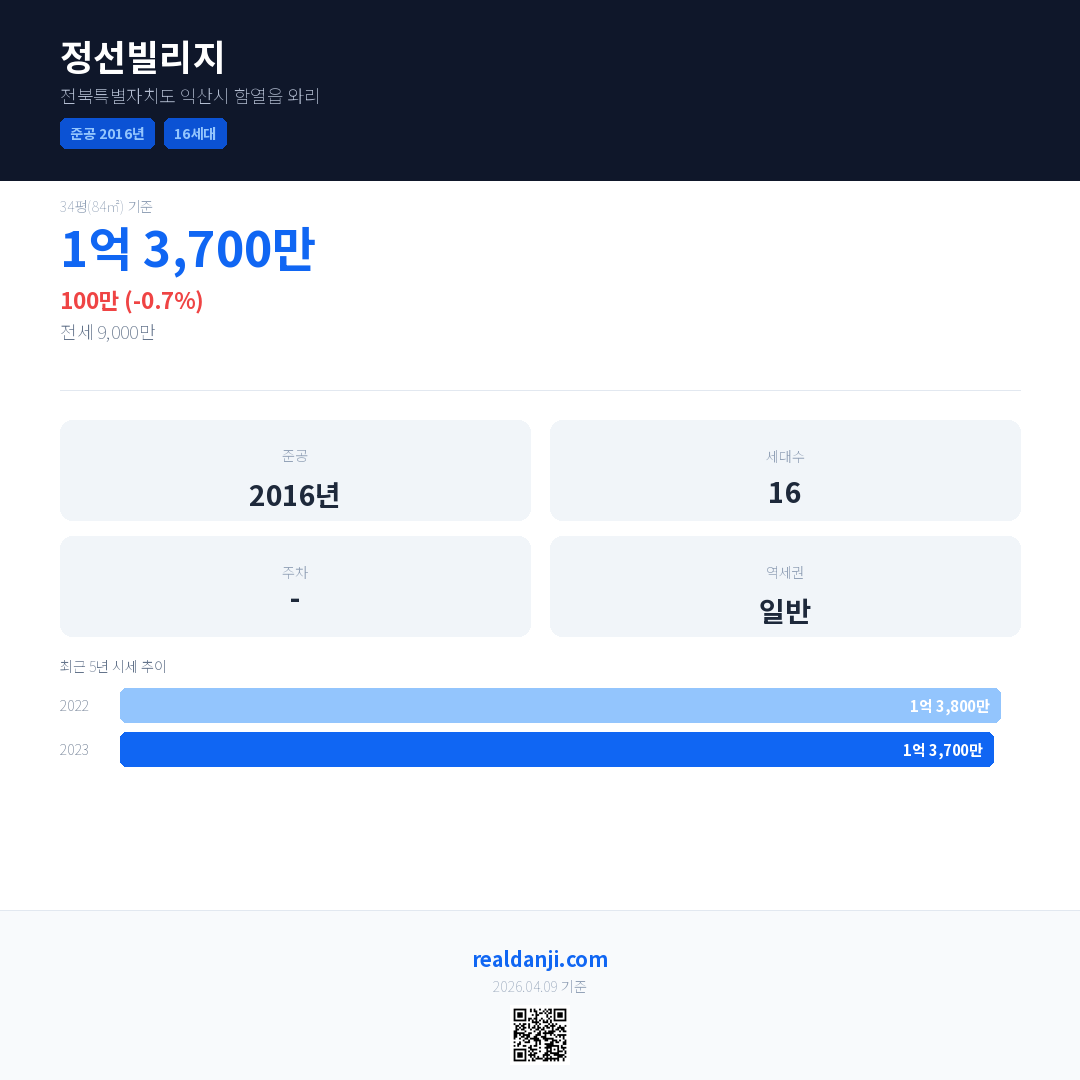 정선빌리지 최근 거래가는 1억 6,000만입니다. (2023-11)