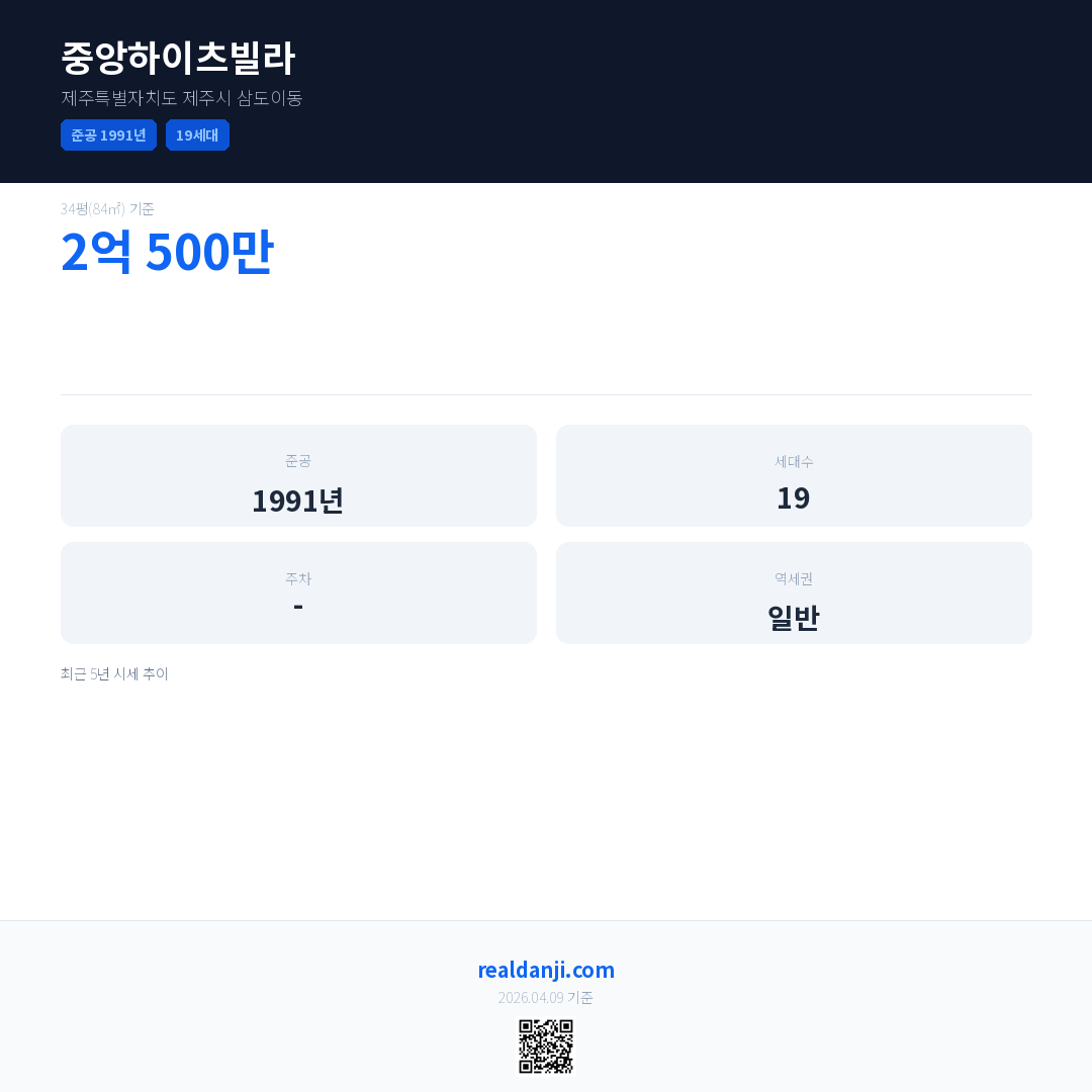 중앙하이츠빌라 최근 거래가는 2억 500만입니다. (2017-01)