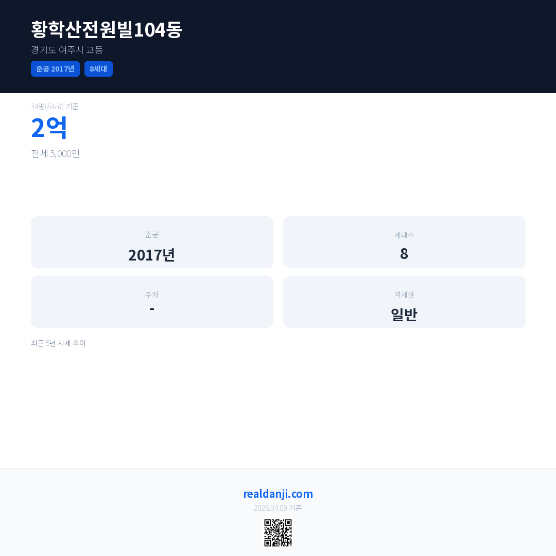 황학산전원빌104동 최근 거래가는 2억입니다. (2020-06)
