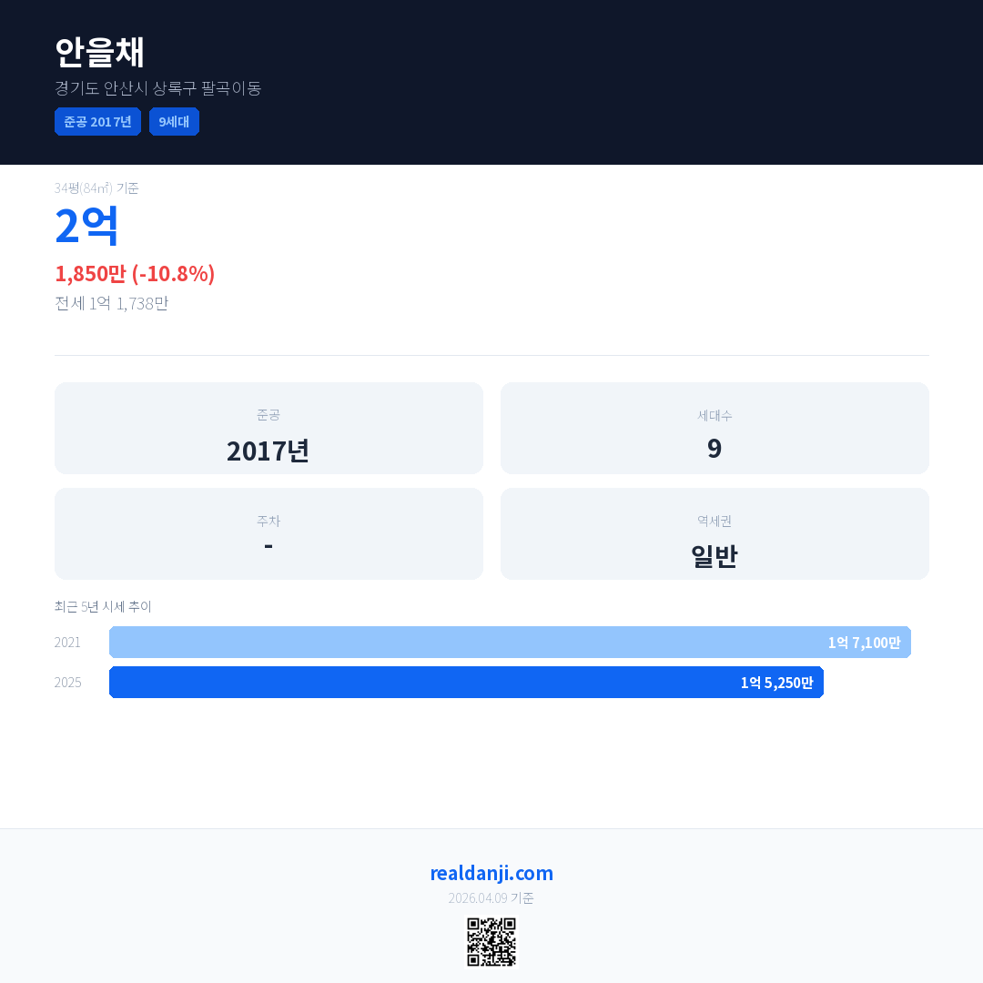 안을채 최근 거래가는 2억입니다. (2025-07)