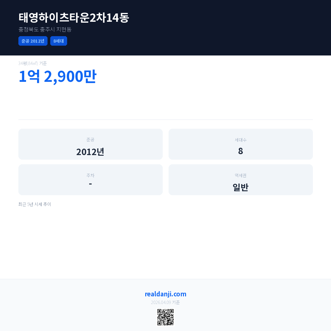태영하이츠타운2차14동 최근 거래가는 1억 2,900만입니다. (2020-09)