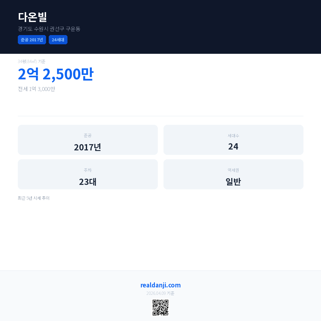 다온빌은(는) 2017년에 준공되었으며, 현재 9년차입니다. 총 24세대 규모입니다.