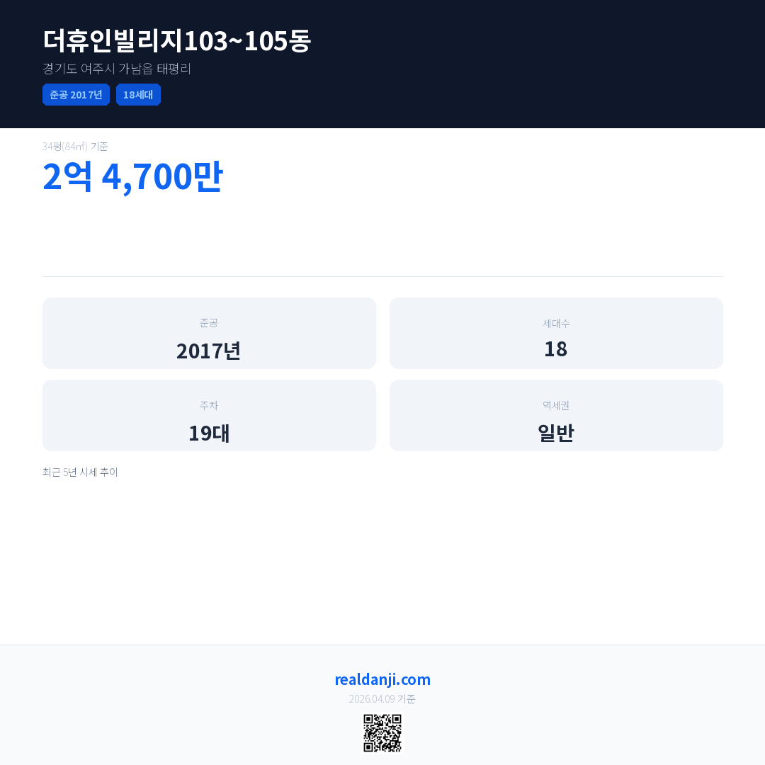 더휴인빌리지103~105동 최근 거래가는 2억 4,700만입니다. (2020-07)