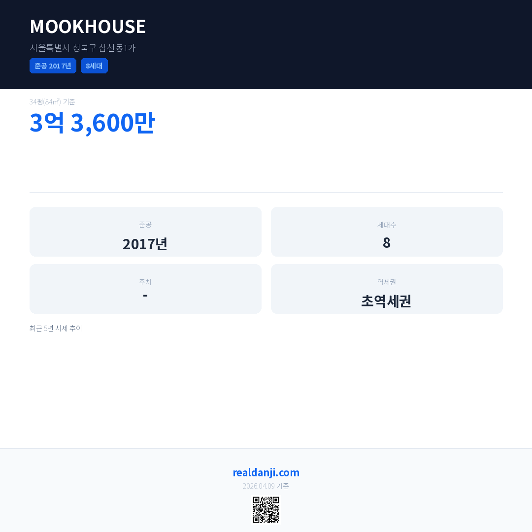 MOOKHOUSE 최근 거래가는 3억 3,600만입니다. (2017-08)