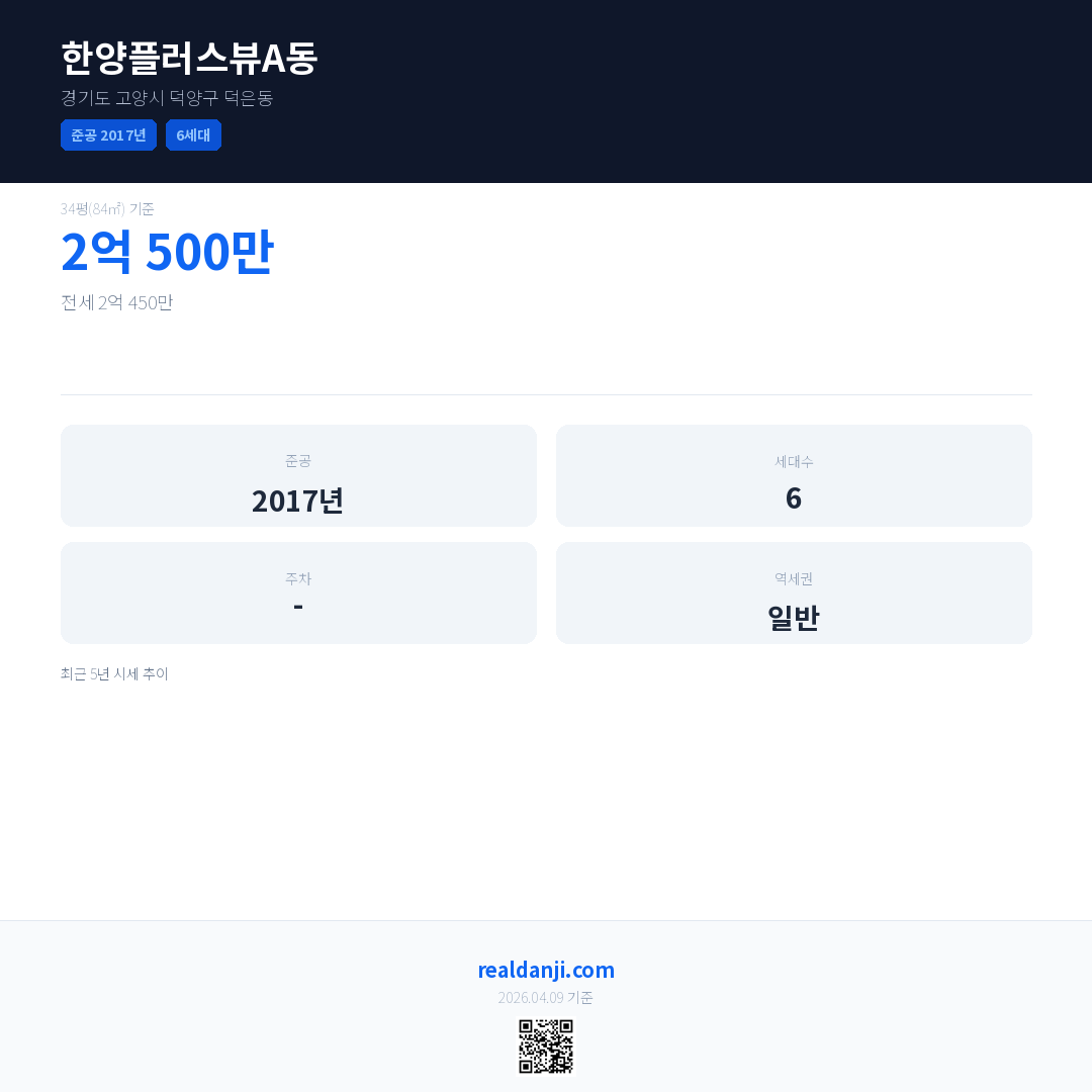 한양플러스뷰A동 최근 거래가는 2억 500만입니다. (2024-04)