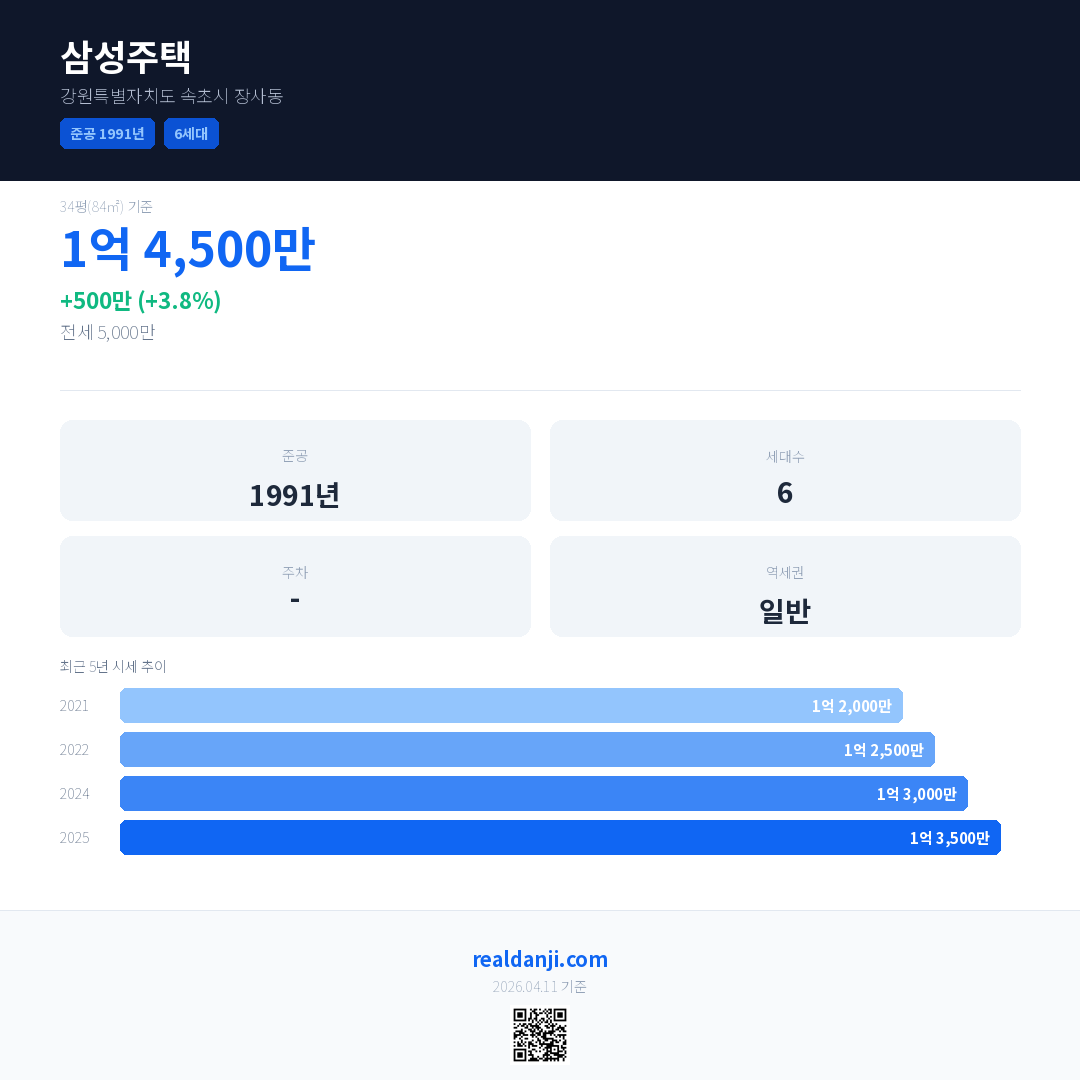 삼성주택 최근 거래가는 1억 4,500만입니다. (2025-07)