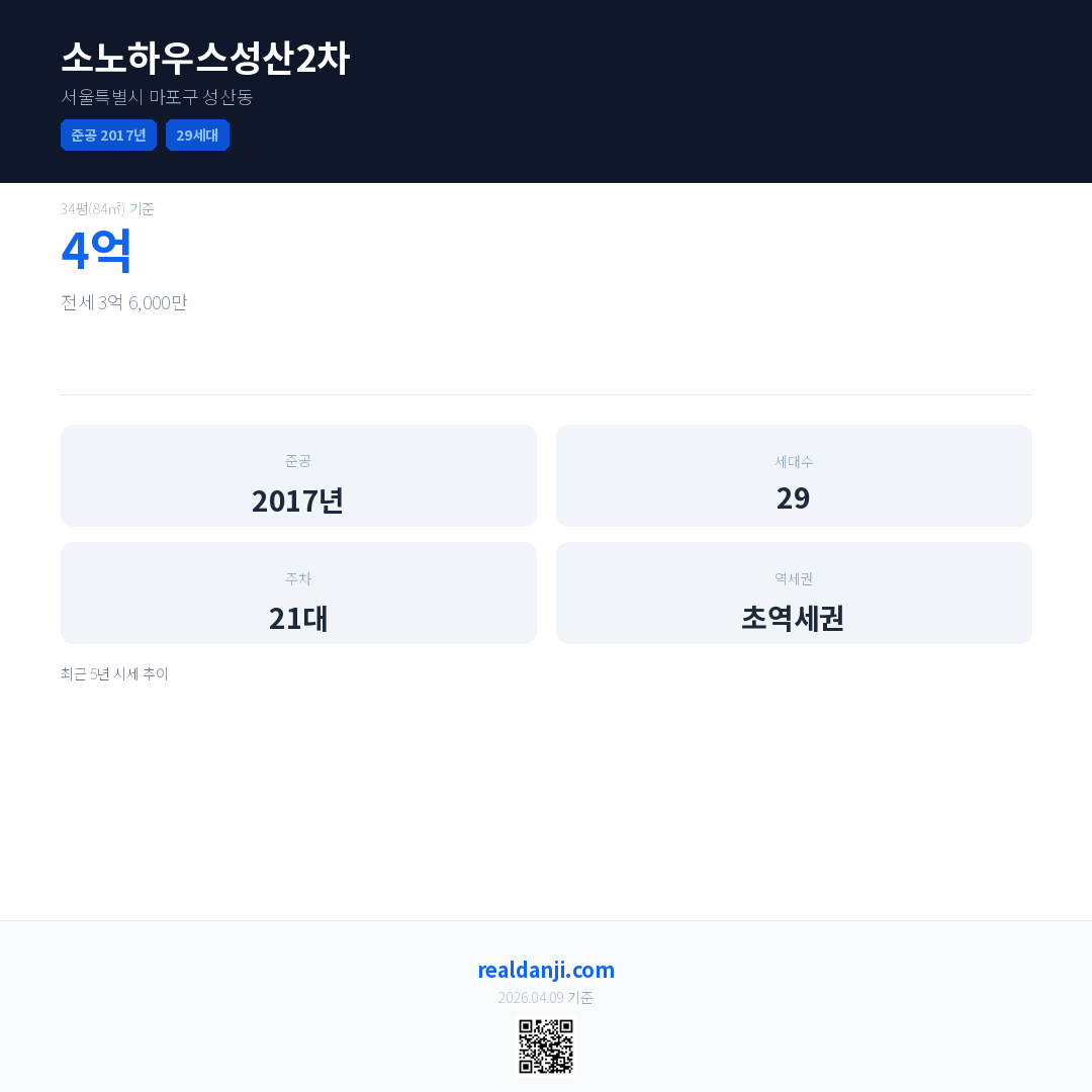 소노하우스성산2차 최근 거래가는 4억입니다. (2026-03)