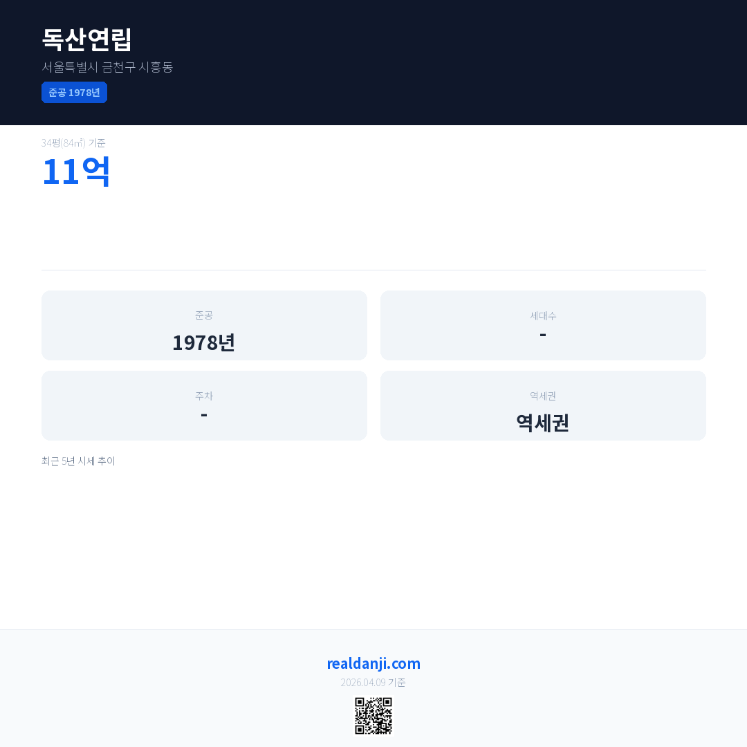 독산연립 최근 거래가는 11억입니다. (2018-01)