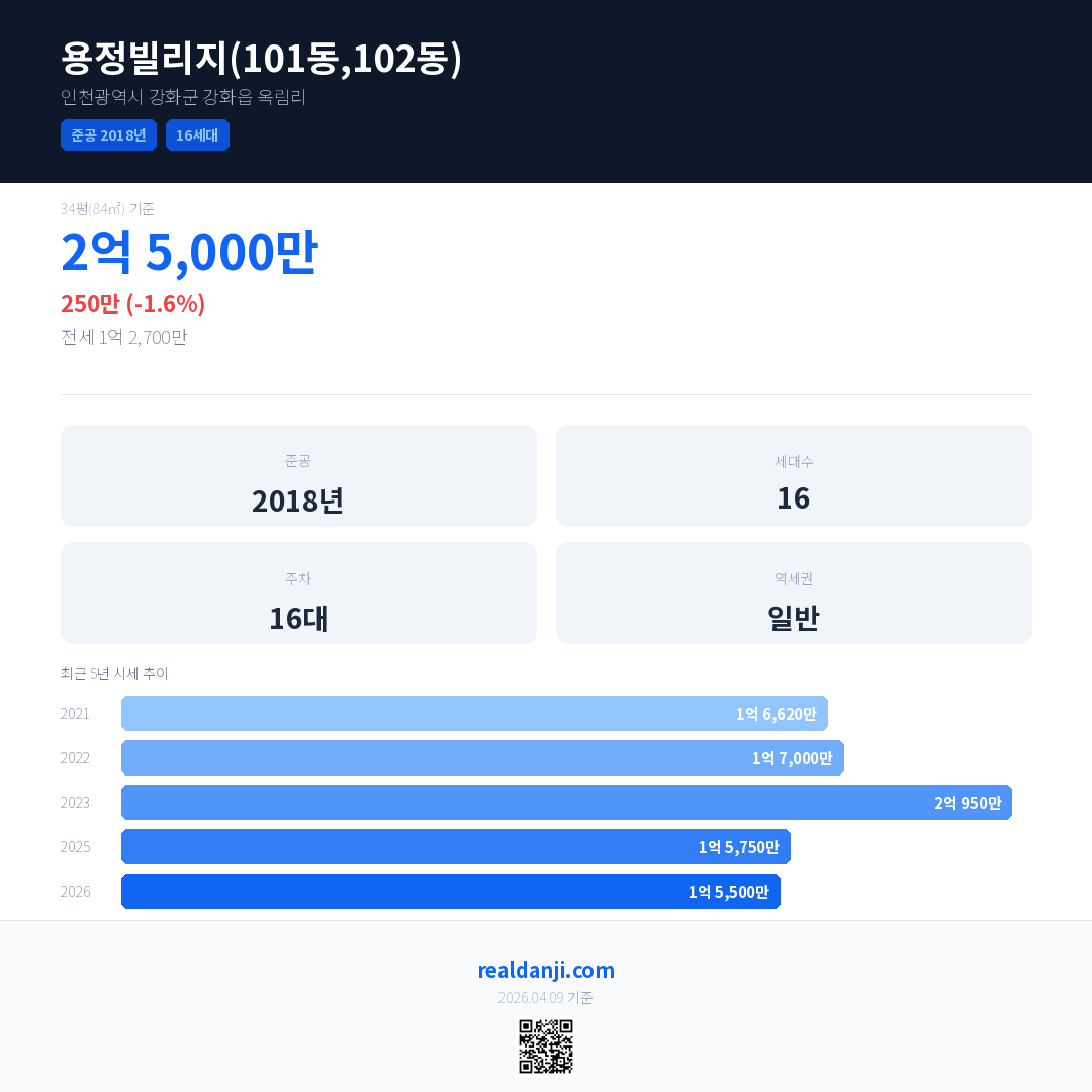 용정빌리지(101동,102동) 최근 거래가는 1억 5,500만입니다. (2026-04)