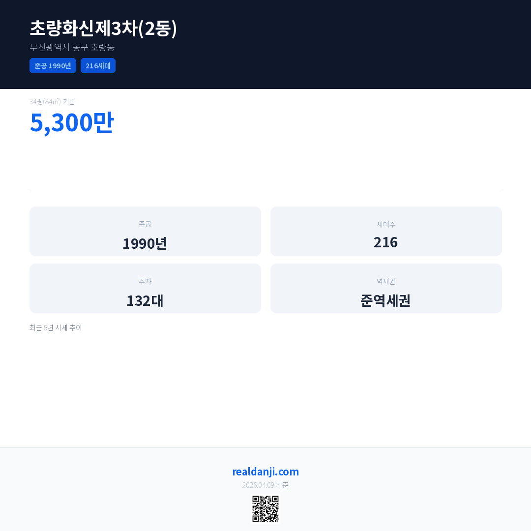 초량화신제3차(2동)은(는) 1990년에 준공되었으며, 현재 36년차입니다. 총 216세대 규모입니다.