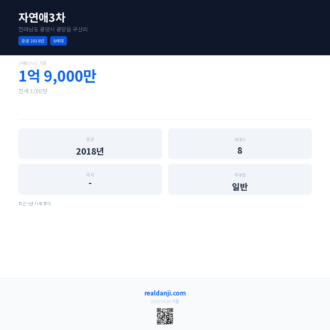 자연애3차 최근 거래가는 2억 5,000만입니다. (2019-06)