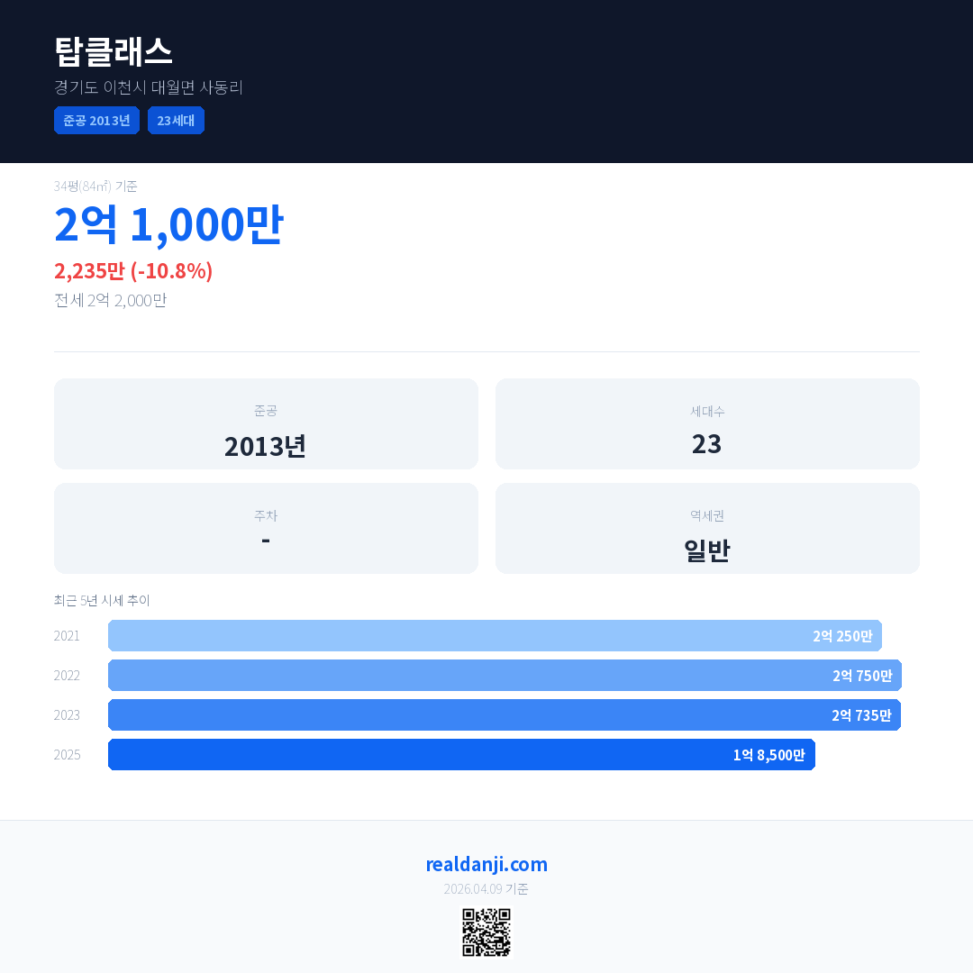 탑클래스 최근 거래가는 2억 1,000만입니다. (2025-01)