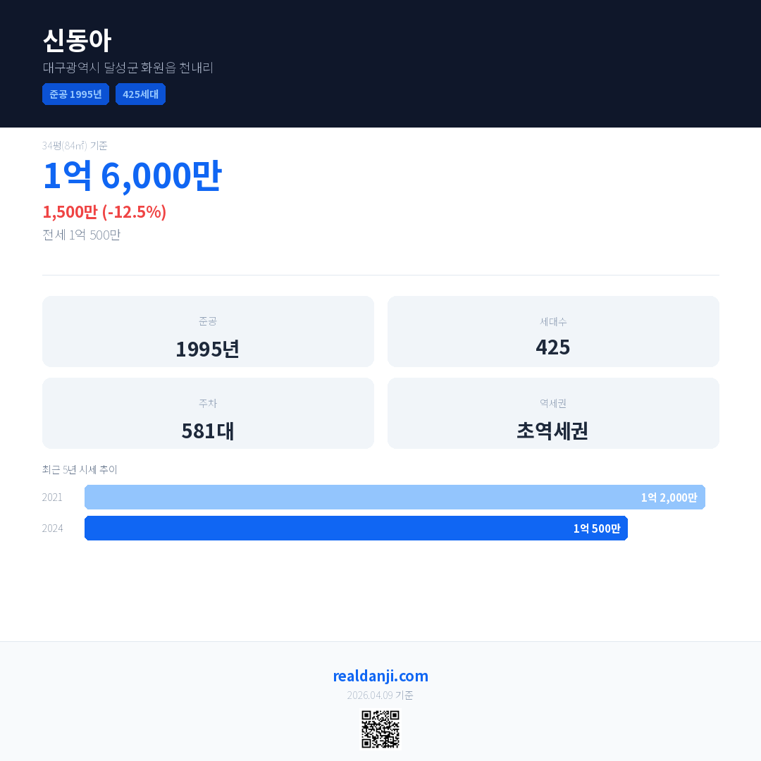신동아 최근 거래가는 1억 6,000만입니다. (2024-05)