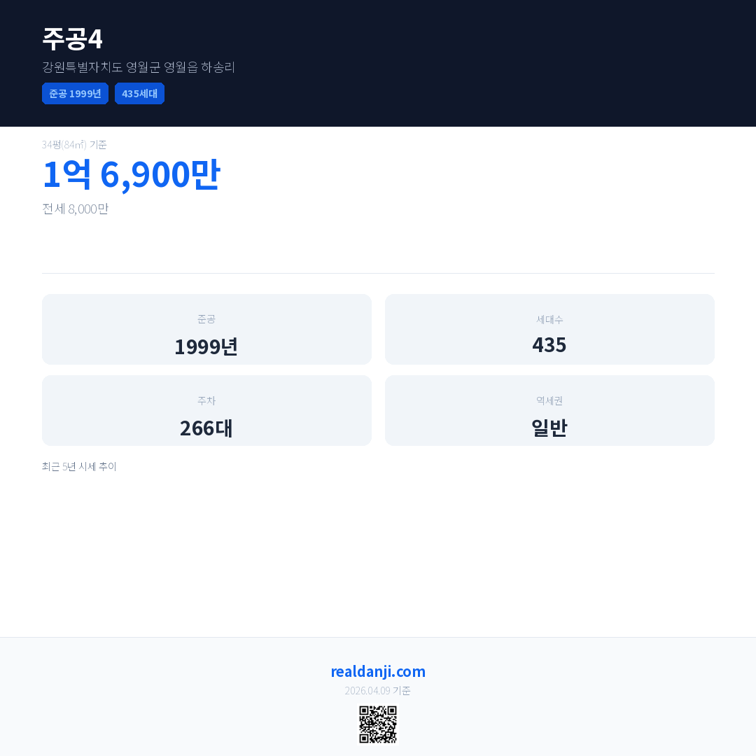 주공4 최근 거래가는 1억 6,900만입니다. (2026-03)