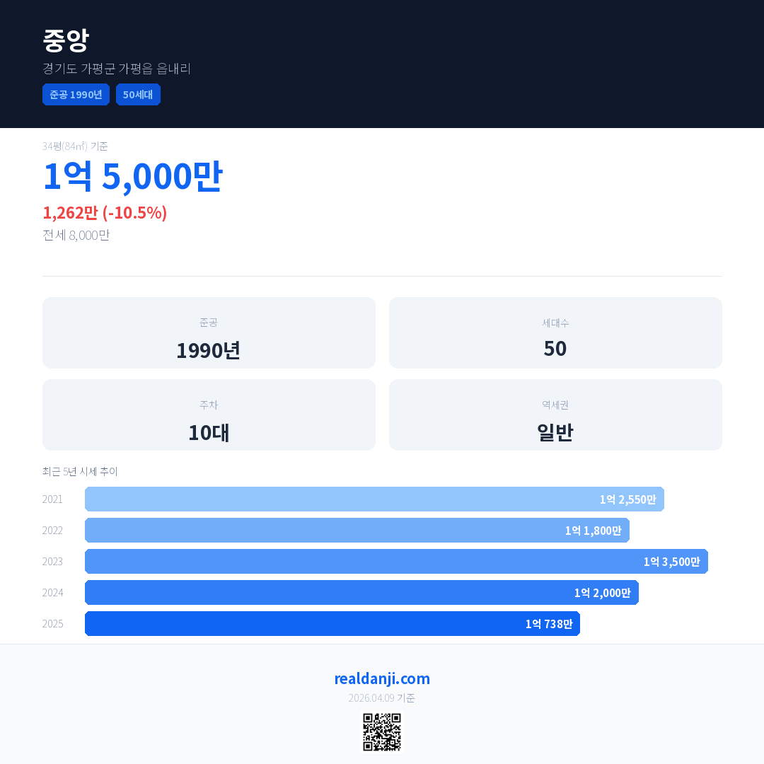 중앙 국민평형 기준 2025년 평균 거래가는 1억 738만으로, 전년 대비 10.5% 하락 했습니다.