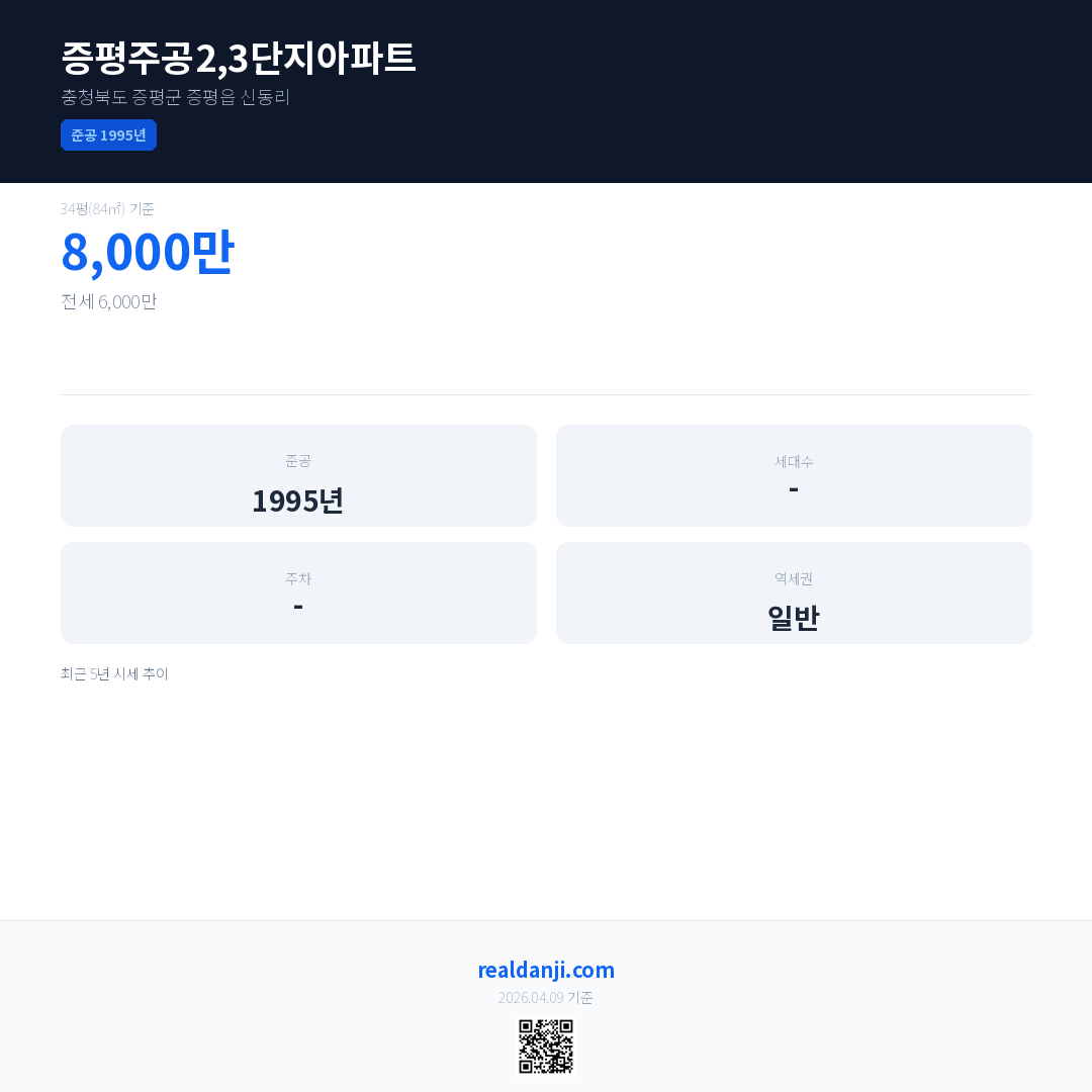 증평주공2,3단지아파트 최근 거래가는 8,400만입니다. (2026-03)