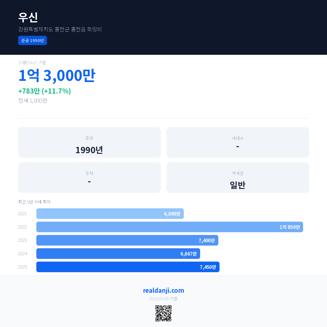 우신 최근 거래가는 1억 3,000만입니다. (2026-03)