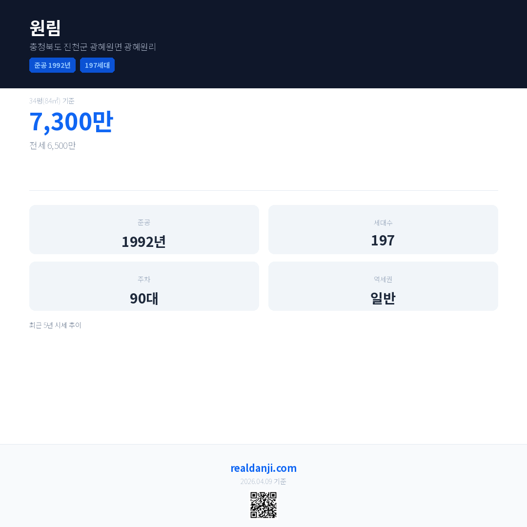 원림은(는) 1992년에 준공되었으며, 현재 34년차입니다. 총 197세대 규모입니다.