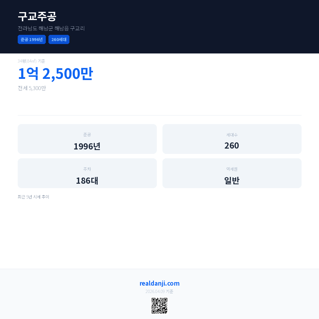 구교주공 최근 거래가는 1억 2,500만입니다. (2026-03)