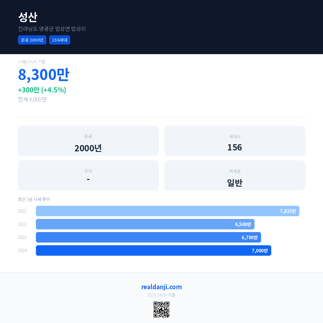 성산 최근 거래가는 8,300만입니다. (2025-11)