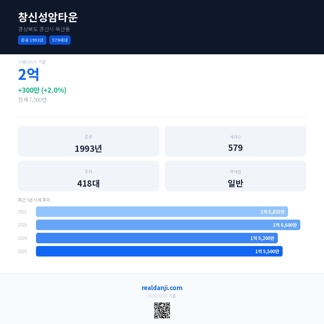 창신성암타운 최근 거래가는 2억입니다. (2026-03)