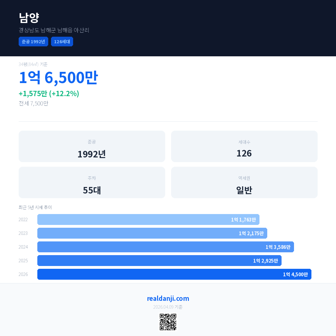 남양 최근 거래가는 1억 6,500만입니다. (2026-02)