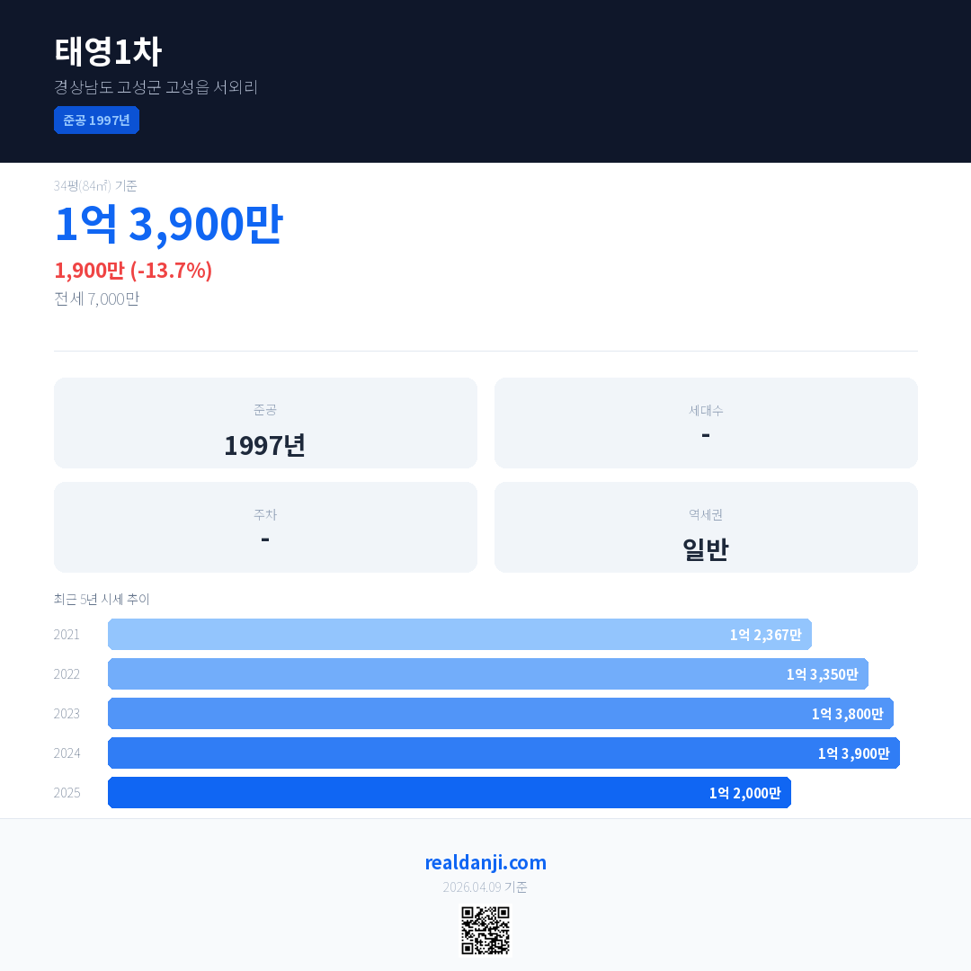 태영1차 최근 거래가는 8,000만입니다. (2026-04)