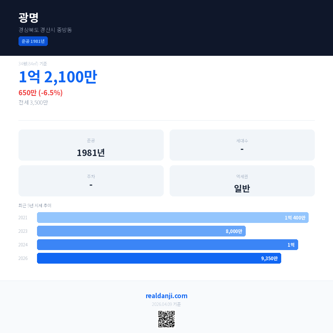 광명 최근 거래가는 8,500만입니다. (2026-04)