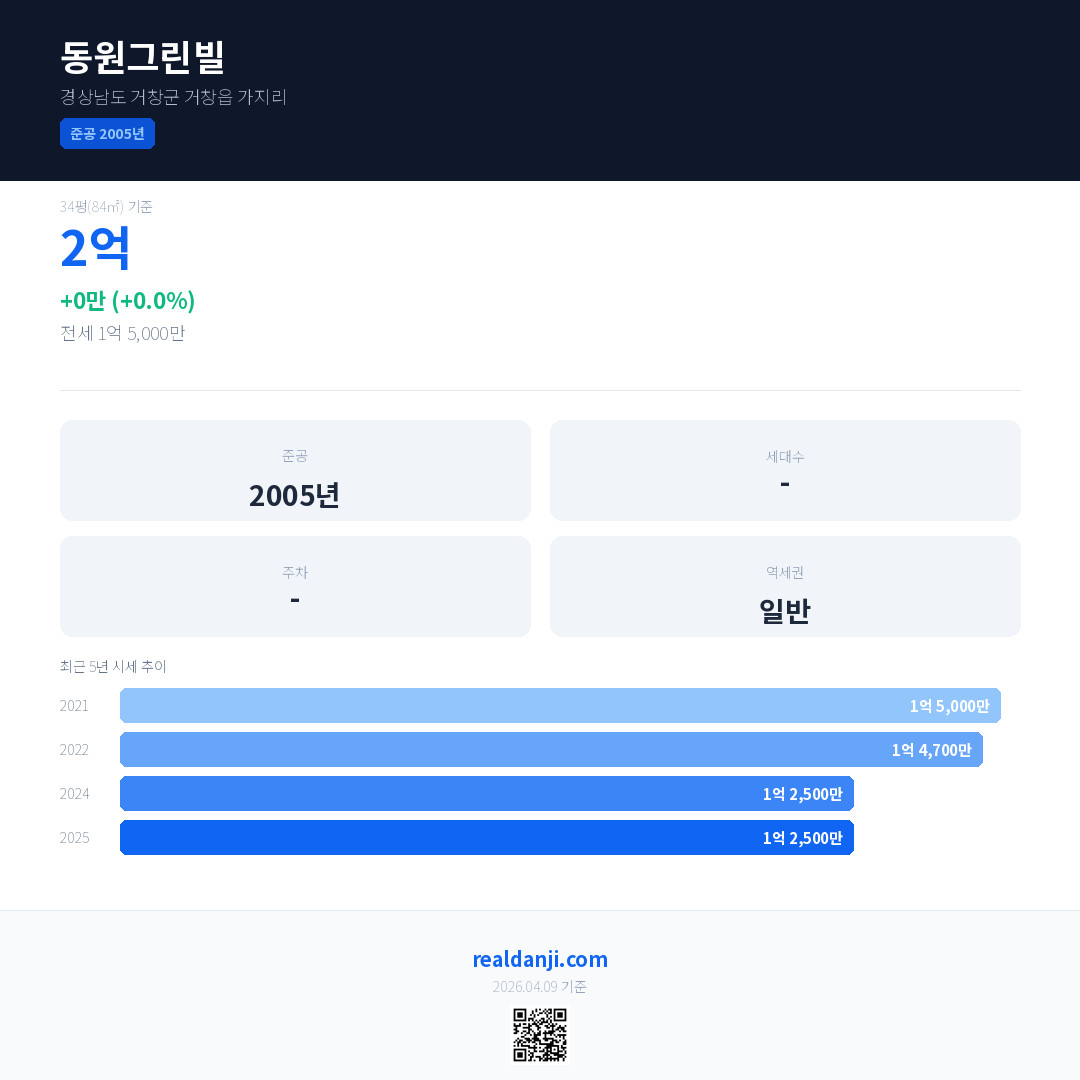 동원그린빌 최근 거래가는 2억입니다. (2025-03)