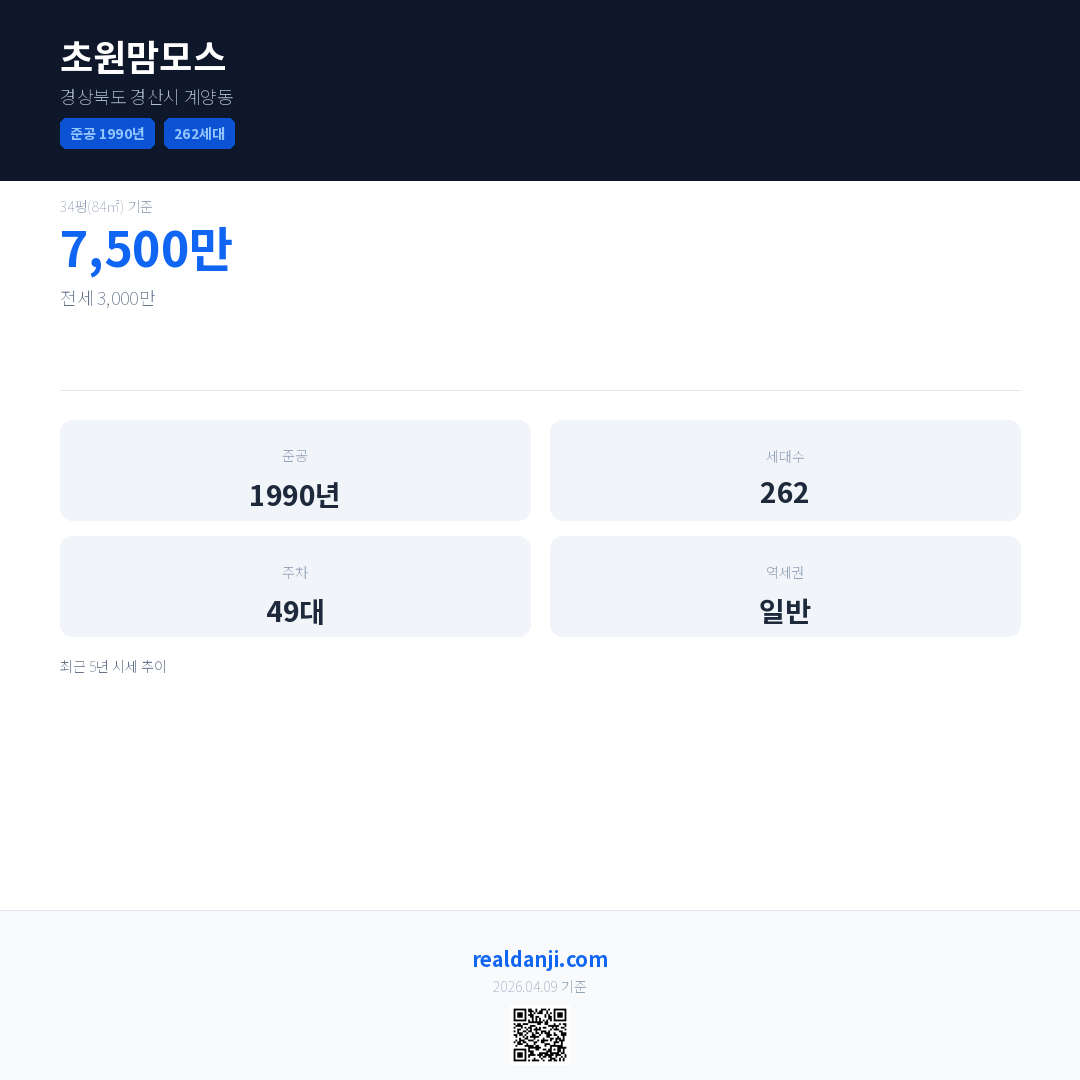 초원맘모스 최근 거래가는 7,500만입니다. (2026-03)