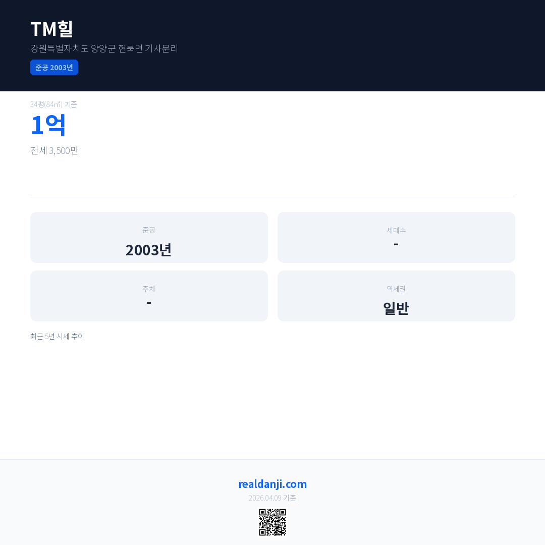 TM힐은(는) 2003년에 준공되었으며, 현재 23년차입니다.