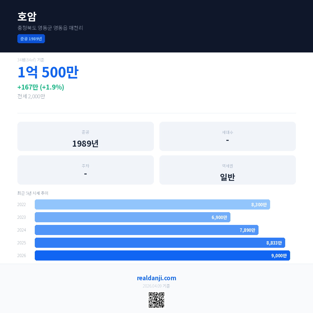 호암 최근 거래가는 9,000만입니다. (2026-01)