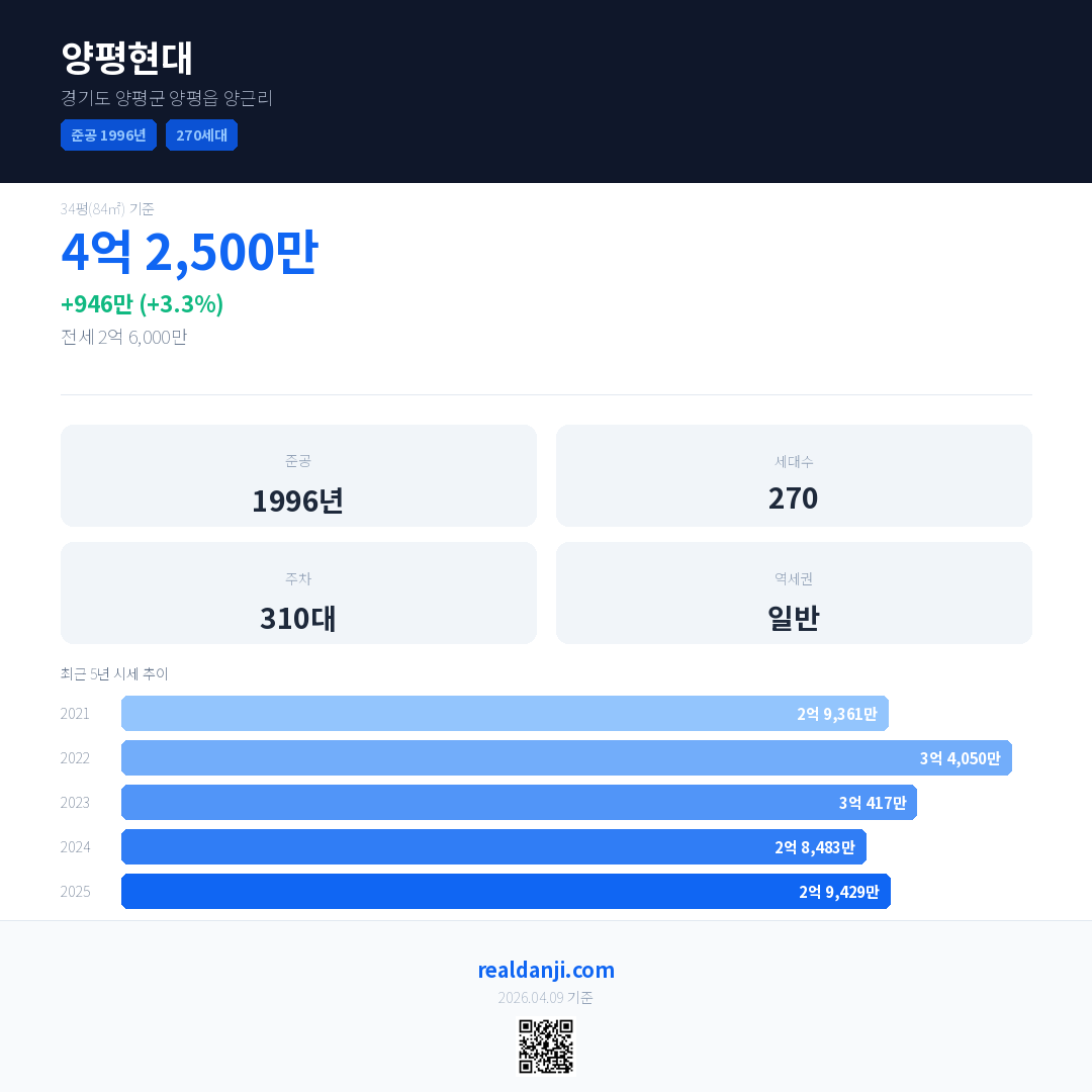 양평현대 최근 거래가는 4억 2,500만입니다. (2026-02)