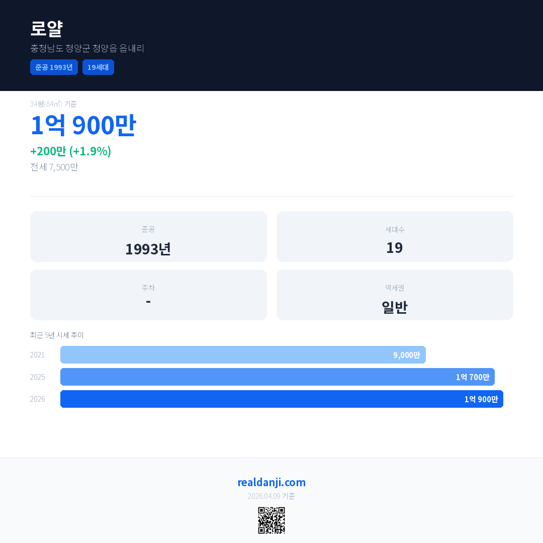로얄 국민평형 기준 2026년 평균 거래가는 1억 900만으로, 전년 대비 1.9% 상승 했습니다.