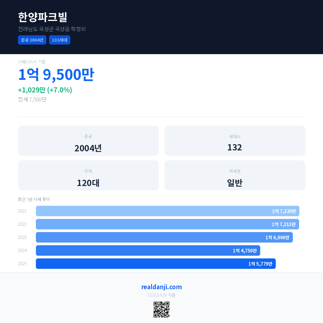한양파크빌 국민평형 기준 2025년 평균 거래가는 1억 5,779만으로, 전년 대비 7.0% 상승 했습니다.