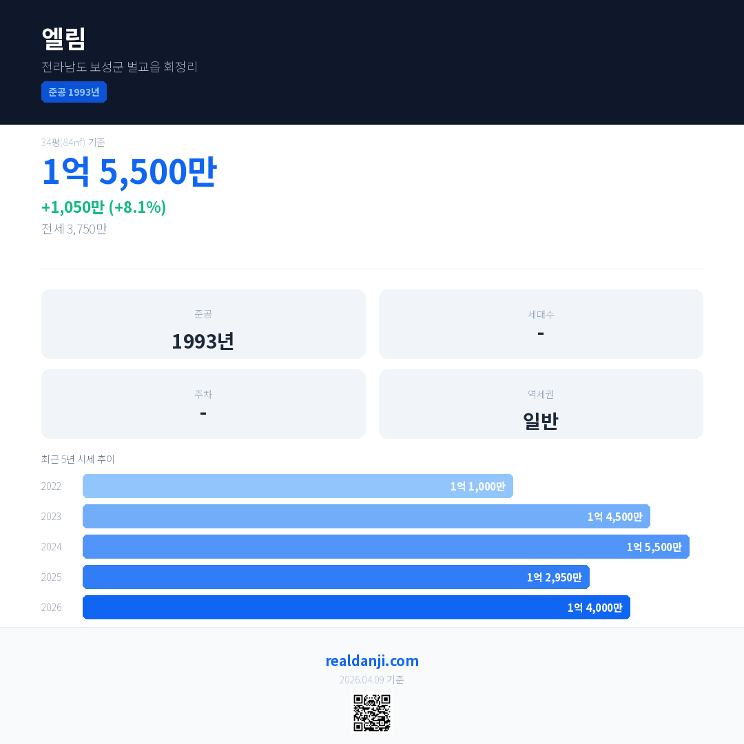 엘림 최근 거래가는 1억 5,500만입니다. (2026-03)