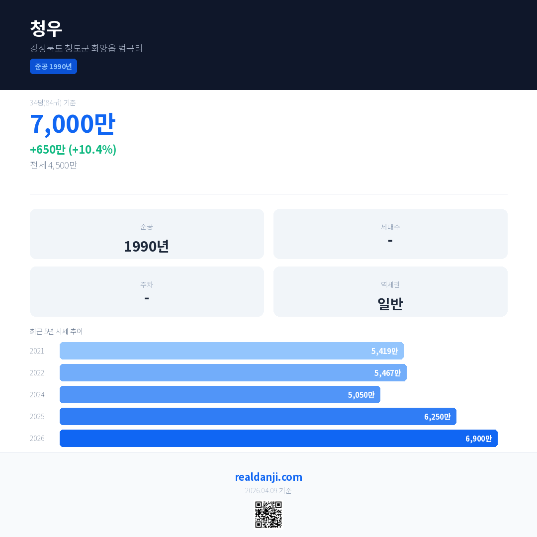 청우 최근 거래가는 7,000만입니다. (2026-02)