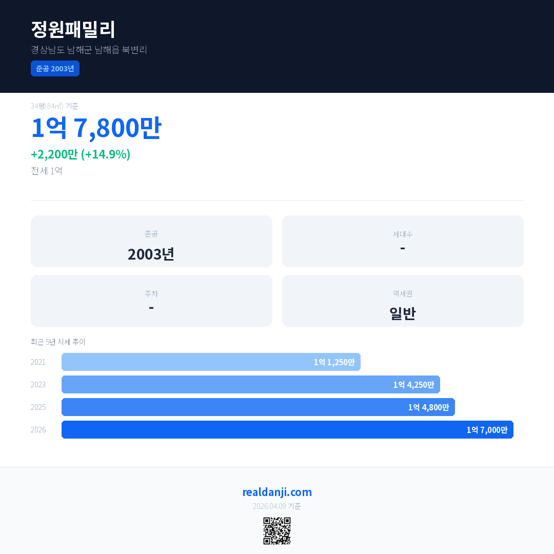 정원패밀리 최근 거래가는 1억 7,800만입니다. (2026-02)