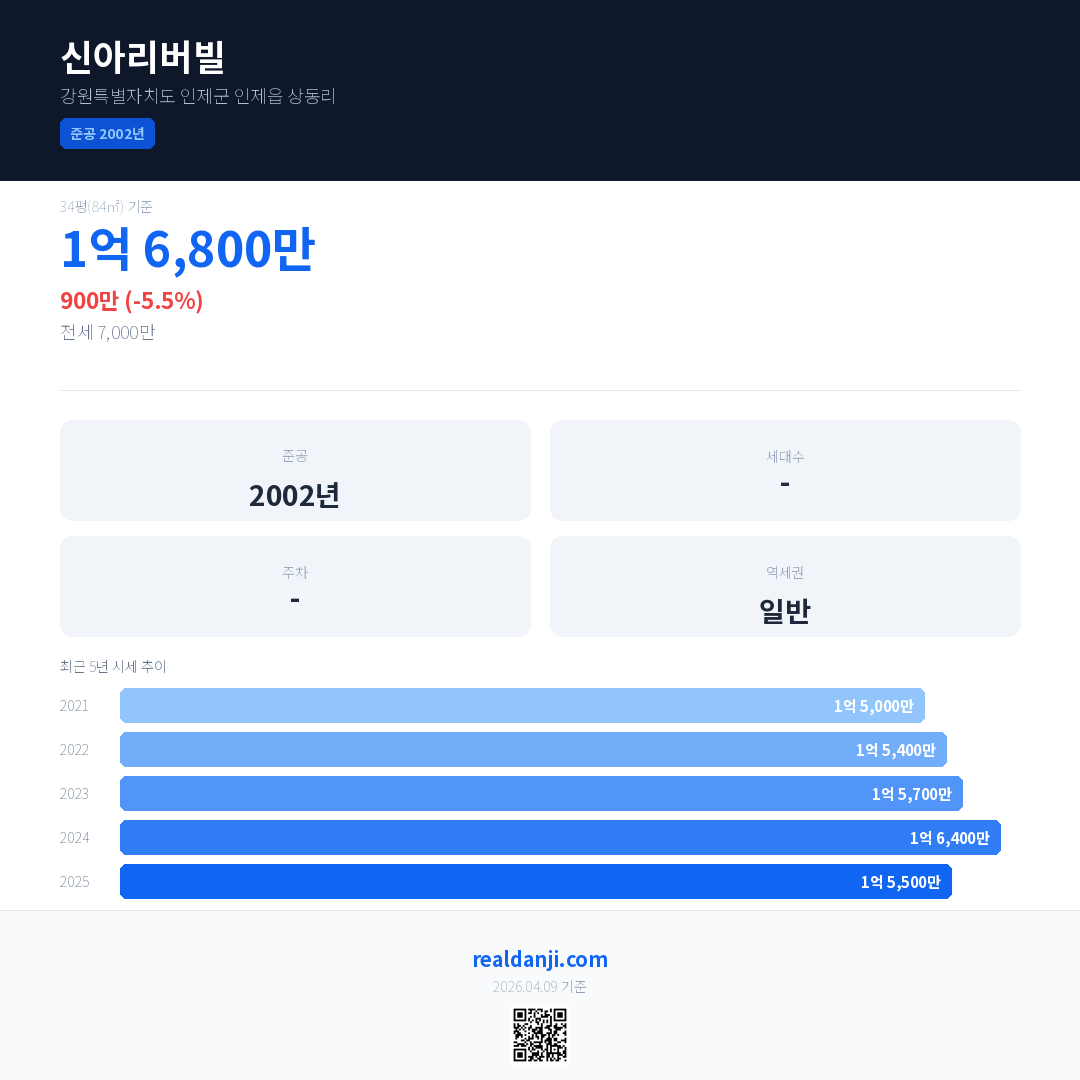 신아리버빌 최근 거래가는 1억 6,800만입니다. (2025-07)