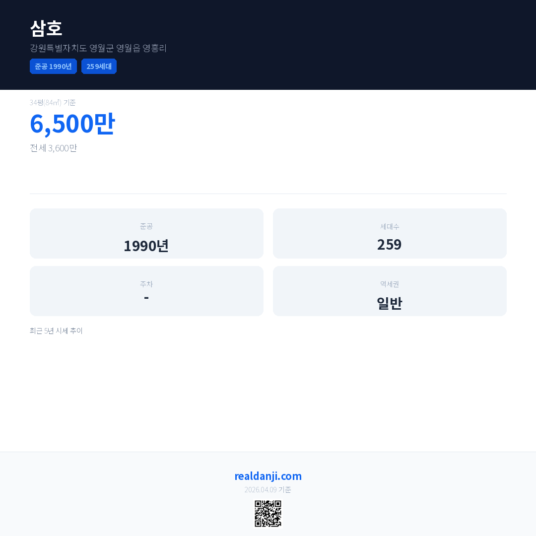 삼호 최근 거래가는 6,500만입니다. (2026-03)