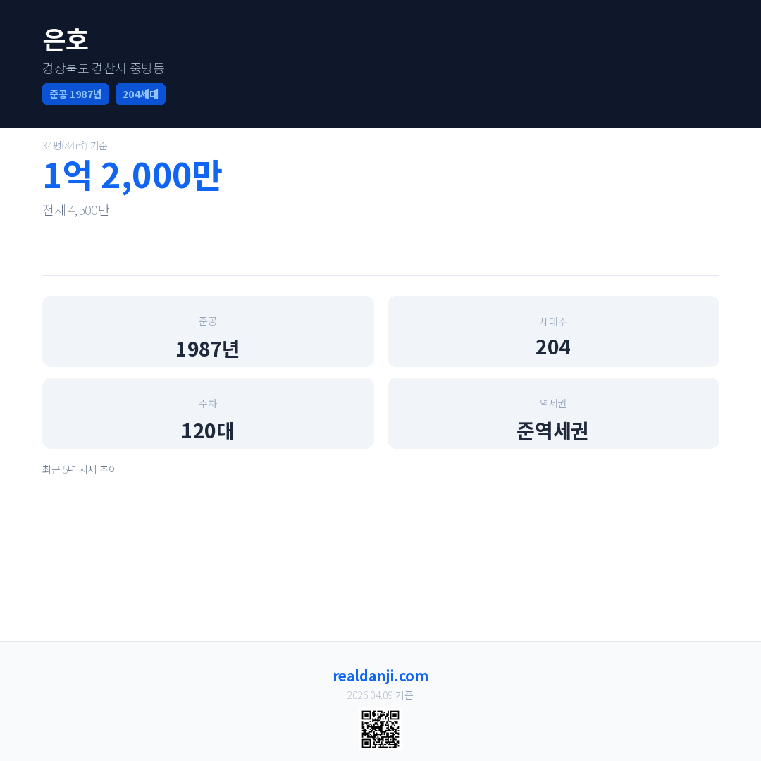 은호은(는) 1987년에 준공되었으며, 현재 39년차입니다. 총 204세대 규모입니다.