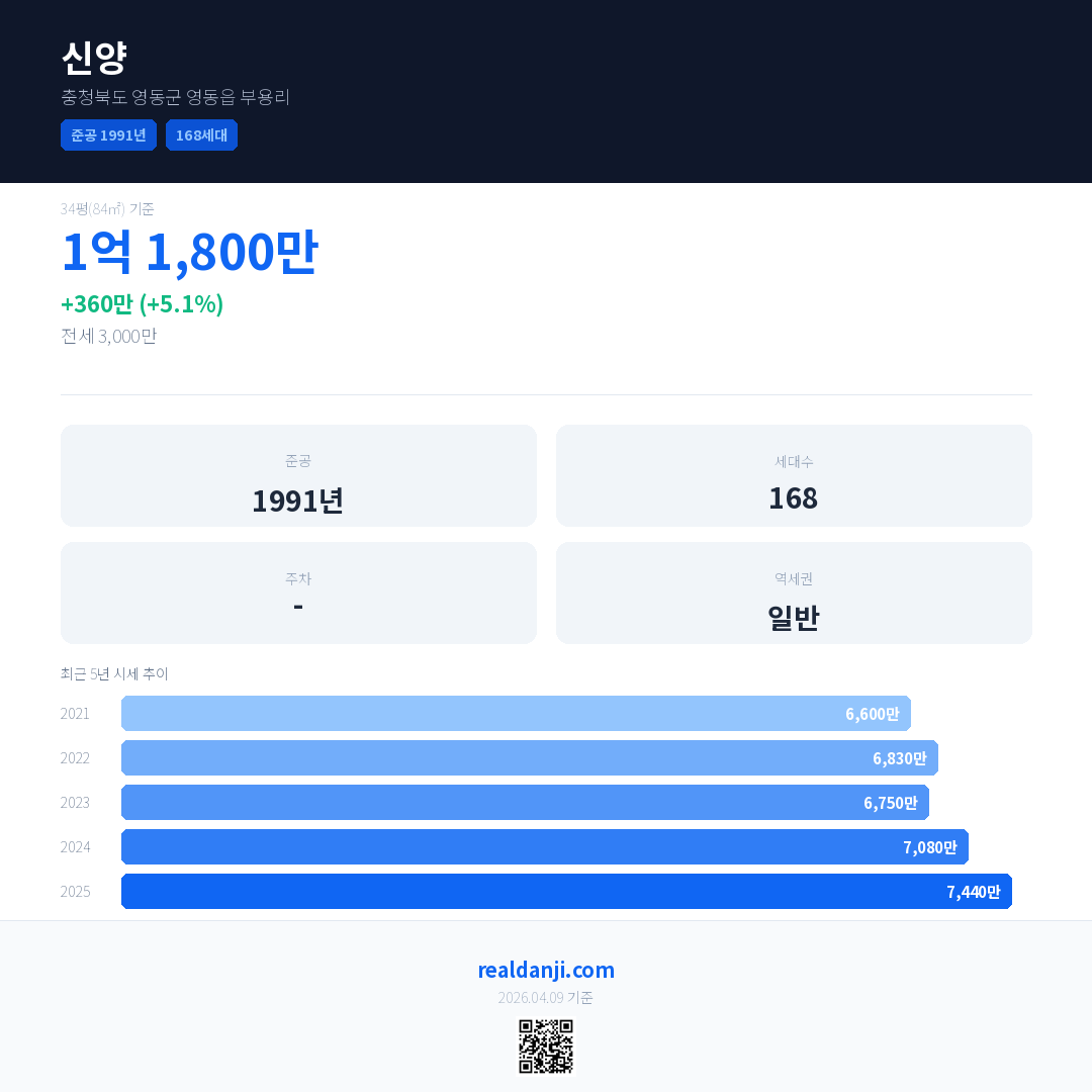 신양 국민평형 기준 2025년 평균 거래가는 7,440만으로, 전년 대비 5.1% 상승 했습니다.