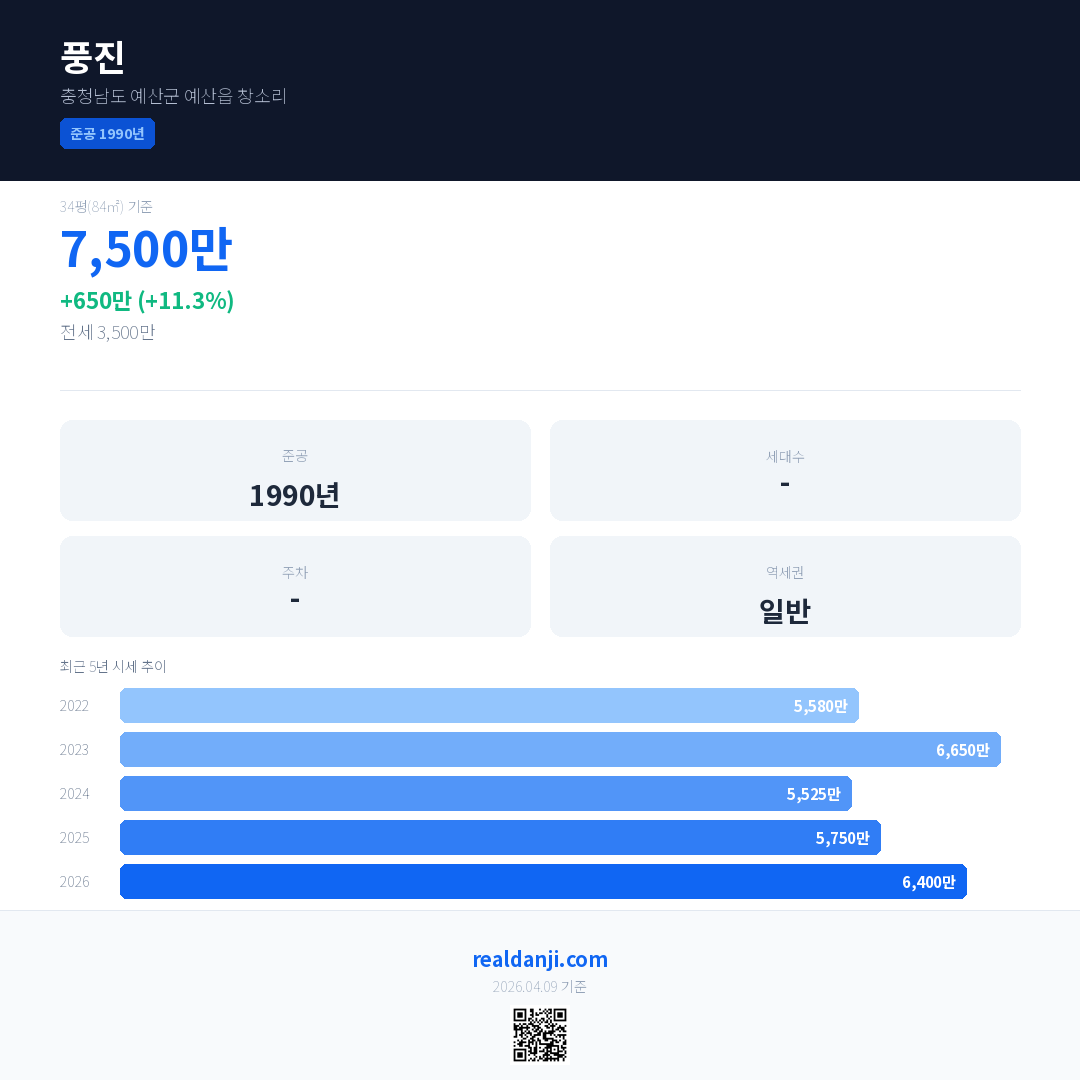 풍진 최근 거래가는 7,500만입니다. (2026-01)